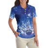 Bowling On Blue Fire Custom Short Sleeve Women Polo Shirt, Personalized Blue Flame Polo Shirt For Female Bowlers Coolspod